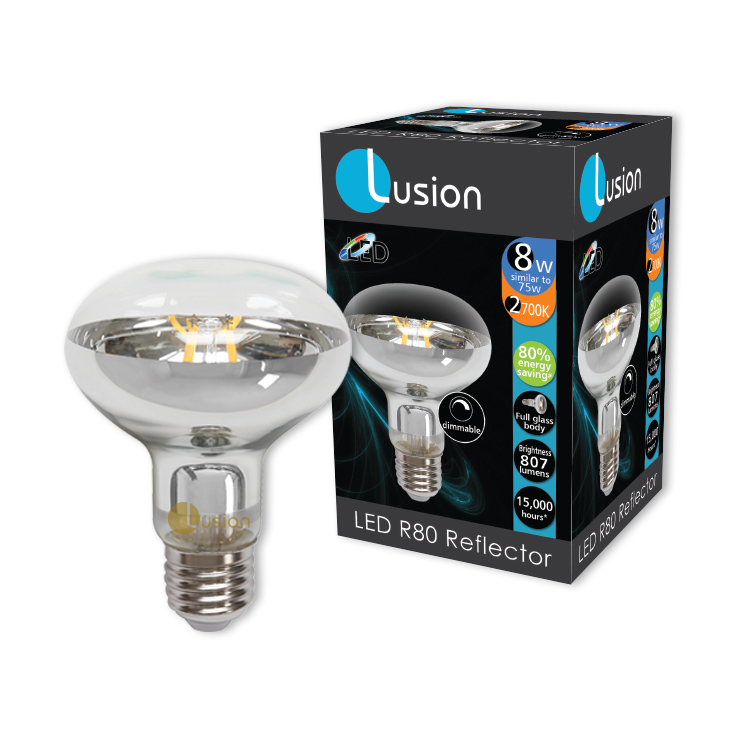 • 8w LED R80 full glass reflector
